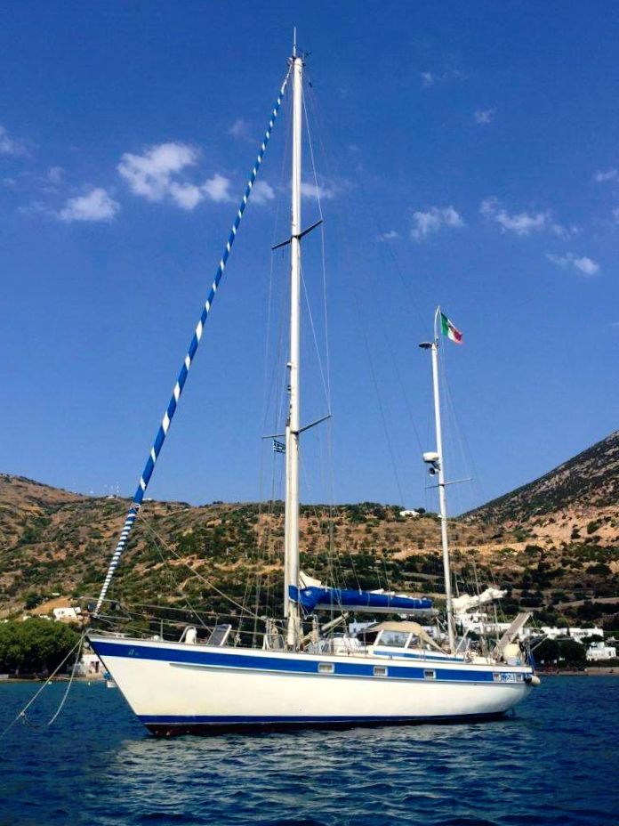VentFin è un Hallberg Rassy 42E Ketch del 1981. Barca svedese di 13 metri, robusta e marina, concepita per navigazioni oceaniche in sicurezza e comfort.