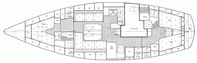 Sistemazione per 4 persone in 2 ampie cabine doppie più 2 eventuali comodi posti in dinette.